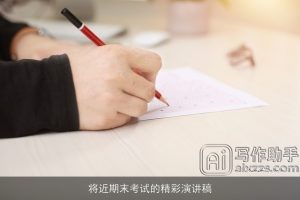 ### 将近期末考试的精彩演讲稿 尊敬的老师们、亲爱的同学们: 大家好!在这个紧张而忙碌的期末时节,我们齐聚一 […]